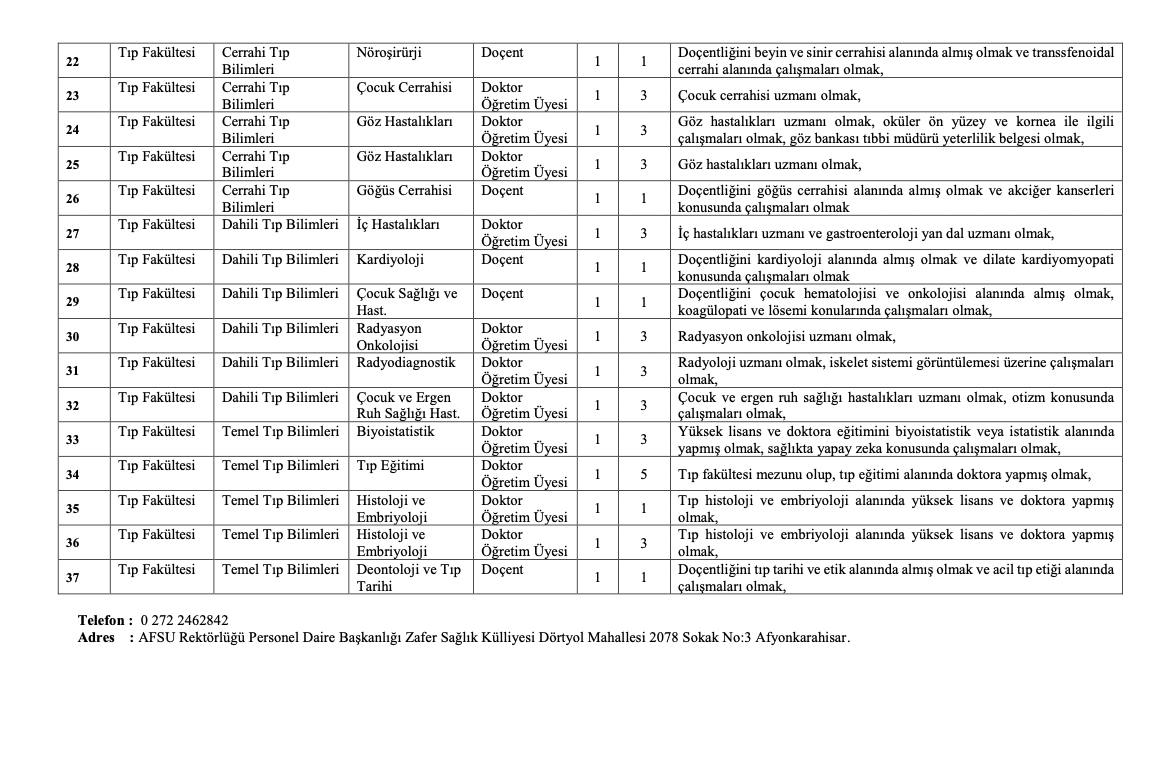 23 Ekim 2021 tarihinde yayımlanan Resmi Gazete’nin 31638 sayısında Afyonkarahisar Sağlık Bilimleri Üniversitesi Öğretim Üyesi alımı yapacağını duyurdu. Yapılacak olan alımların herkes için faydalı olmasını temenni ederiz. Afyonkarahisar Sağlık Bilimleri Üniversitesi öğretim üyesi alımı ile ilgili tüm detaylar haberimizin devamında sizlerle.