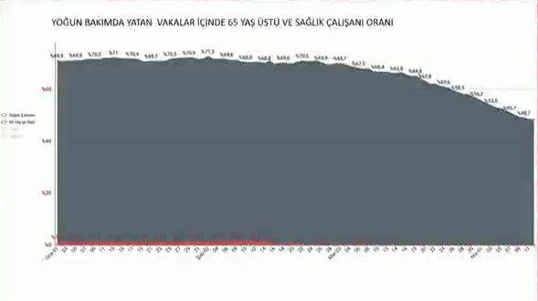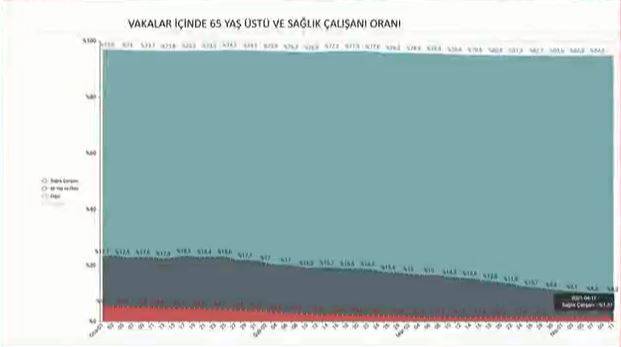 65 yaş üstü ve sağlık çalışanlarının aşı sonrası vaka oranı 65 yaş üstü vatandaşların 1 Ocak itibari ile 17.7 şimdi ise %8.2 Neredeyse yarı yarıya düşmüş durumda. Şuana kadar 65 yaş üstü aşılanan oranı 76.4.