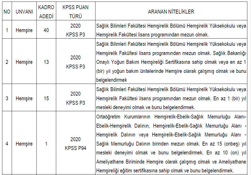 > Adayların puanlarının eşit olması halinde mezuniyet tarihi önce olan, bunun da eşit olması halinde doğum tarihi büyük olan adaya öncelik tanınacaktır.