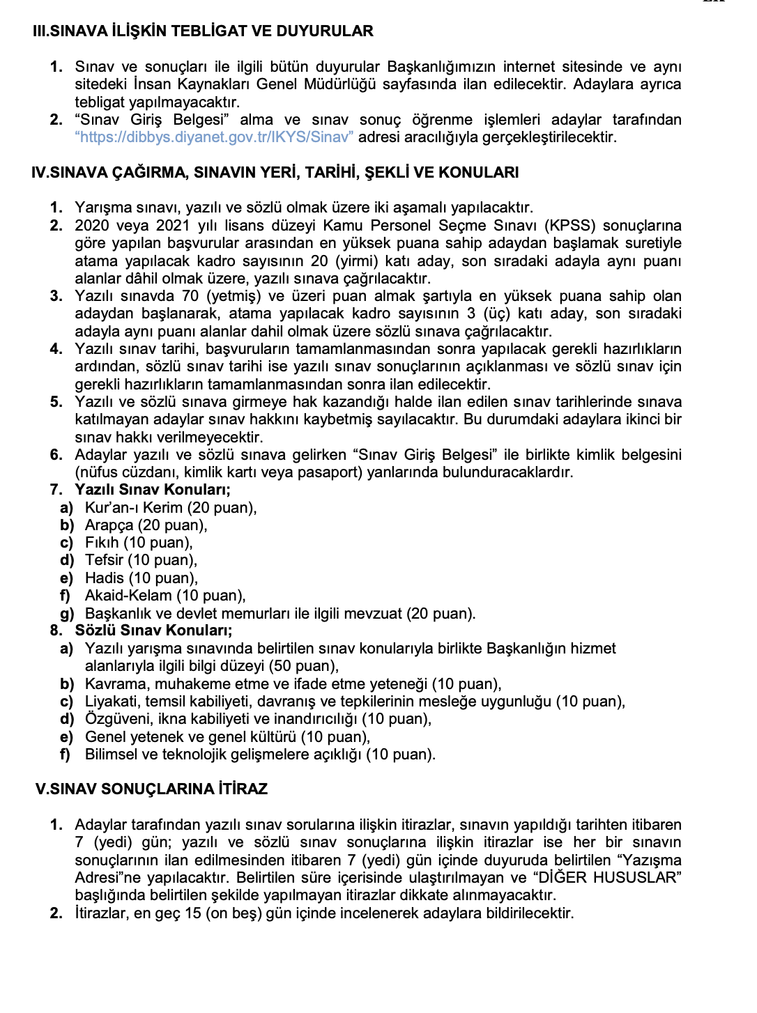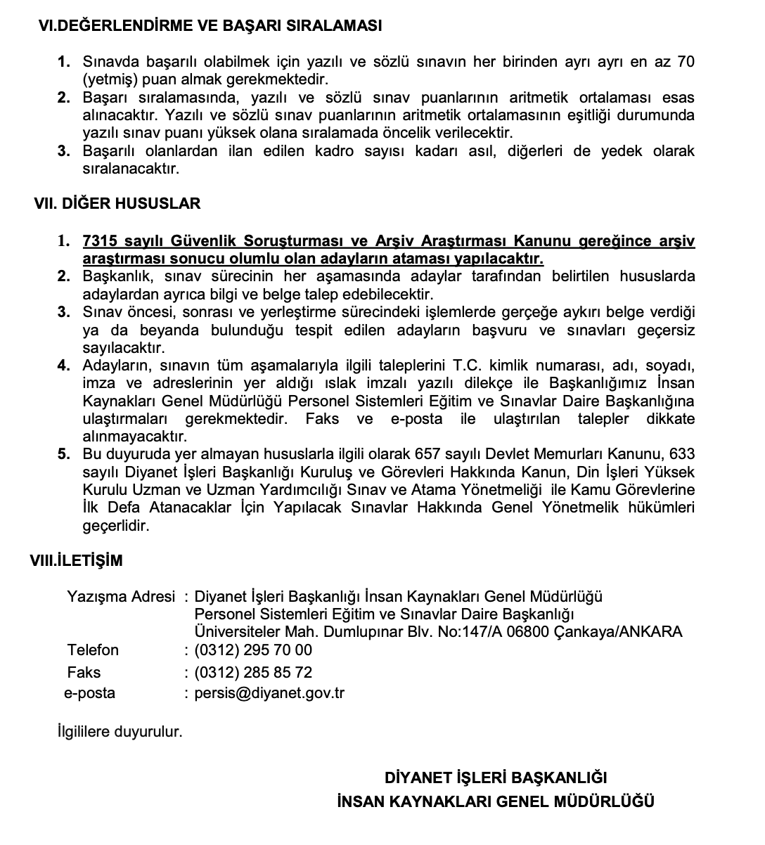 Diyanet İşleri Başkanlığımız Merkez Teşkilatında münhal bulunan; aşağıda, sınıfı, kadro derecesi, puan türü ve adedi belirtilen Din İşleri Yüksek Kurulu uzman yardımcısı kadrolarına atama yapmak için yarışma sınavı yapılacaktır.Yapılacak olan sınav ve daha fazlası haberimizin devamında sizlerele birlikte…