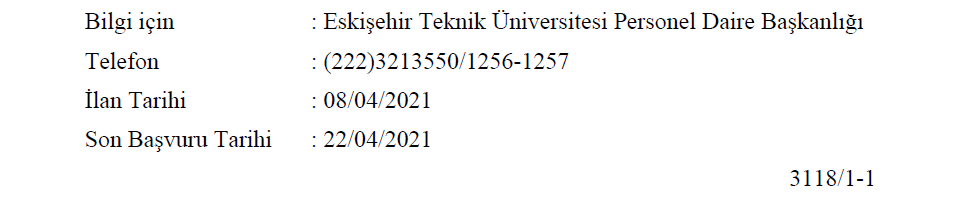Bilgi için : Eskişehir Teknik Üniversitesi Personel Daire Başkanlığı