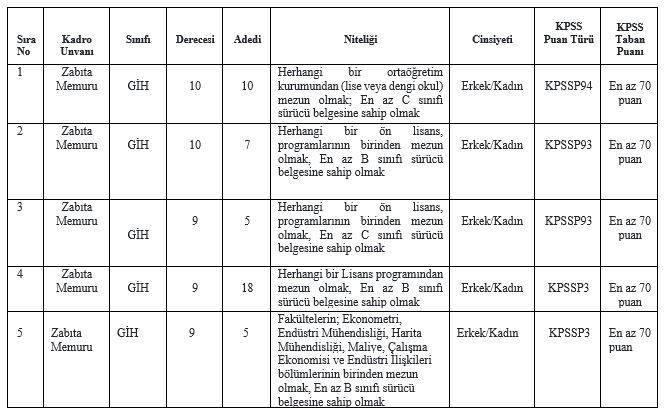 Belediyemizin yukarıda gösterilen boş zabıta memuru kadroları için yapılacak başvurularda uyulması gereken genel ve özel şartlar aşağıda açıklanmıştır.
