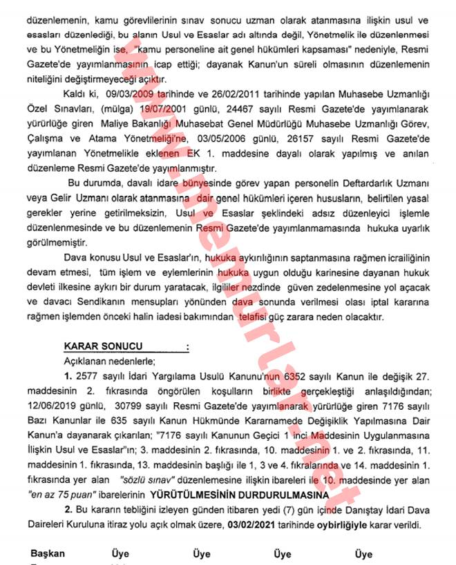 Danıştay, bu çerçevede iptali istenen “sözlü sınav” ve “en az